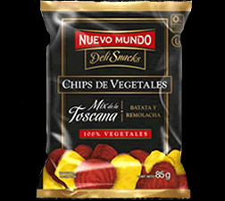 Otra innovadora opción de crocantes chips artesanales de sabrosísimas Batatas sumadas al inigualable sabor de las más ricas Remolachas. Una sofisticada combinación de colores, formatos y sabores.